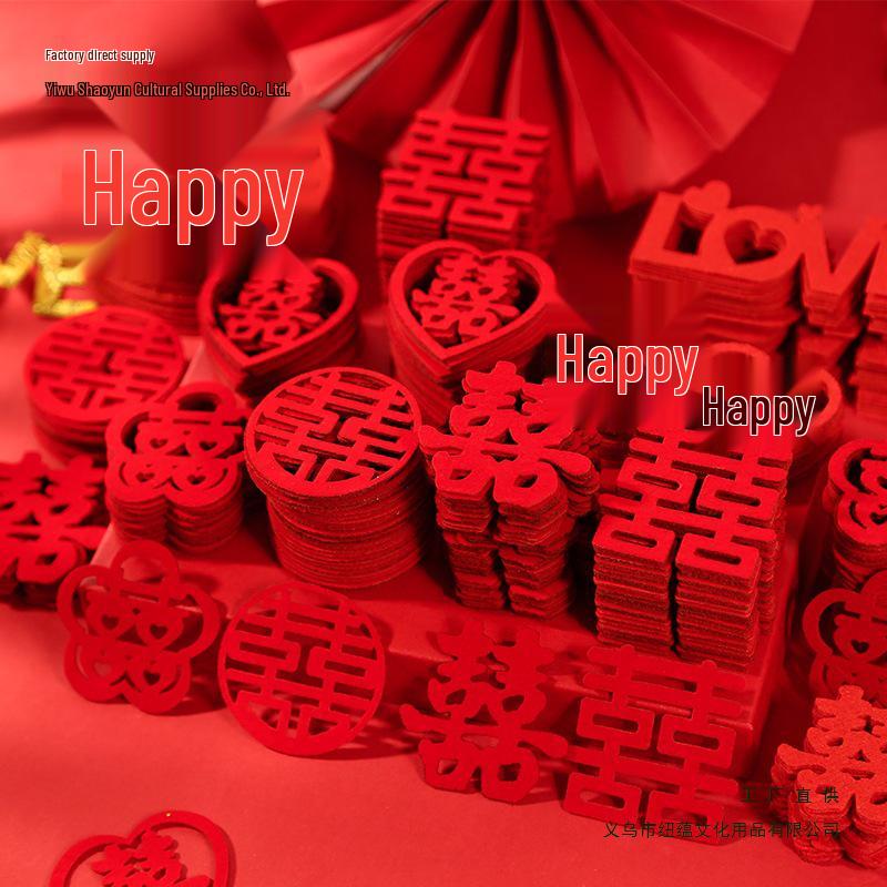 Small Double Happiness Hand-Tossed Fruit Plate for Wedding Decoration - Mini Chinese Style Round Bedding Arrangement