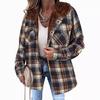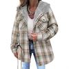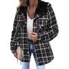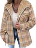Women's Checkered Plaid Fleece-Lined Jacket, Cozy Outerwear with Soft Collar