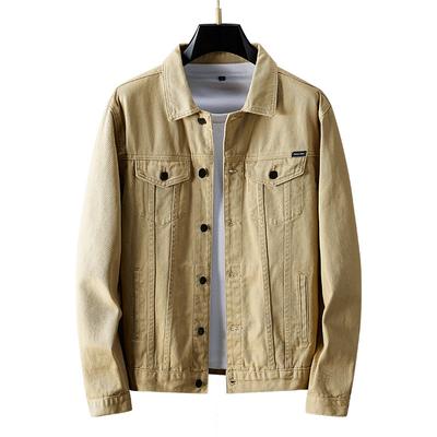 Men's Denim Jacket Solid Color Turn Down Collar Casual Male Jean Coats Cargo Button Outerwear