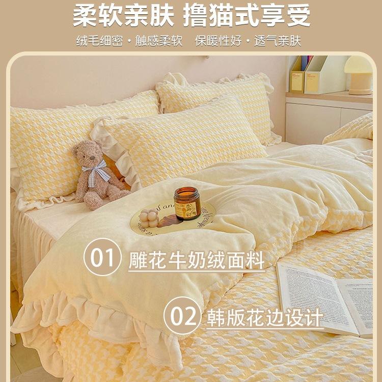 Size specifications: student bed [bed sheet three-piece set] suitable for 150x200 quilt, 0.9m bed [bed sheet three-piece set] suitable for 150x200 quilt, 1.2m bed [bed sheet three-piece set] suitable for 150x200 quilt, 1.5m bed [bed sheet four-piece set] suitable for 200x230 quilt, 1.8m bed [bed sheet four-piece set] suitable for 200x230 quilt, 2.0m bed [bed sheet four-piece set] suitable for 220x240 quilt, four-piece set of 1.5m mattress model - suitable for 200x230 quilt, four-piece set of 1.8m mattress model - suitable for 200x230 quilt, four-piece set of 1.5m bed skirt model - suitable for 200x230 quilt, four-piece set of 1.8m bed skirt model - Suitable for 200x230 quilts