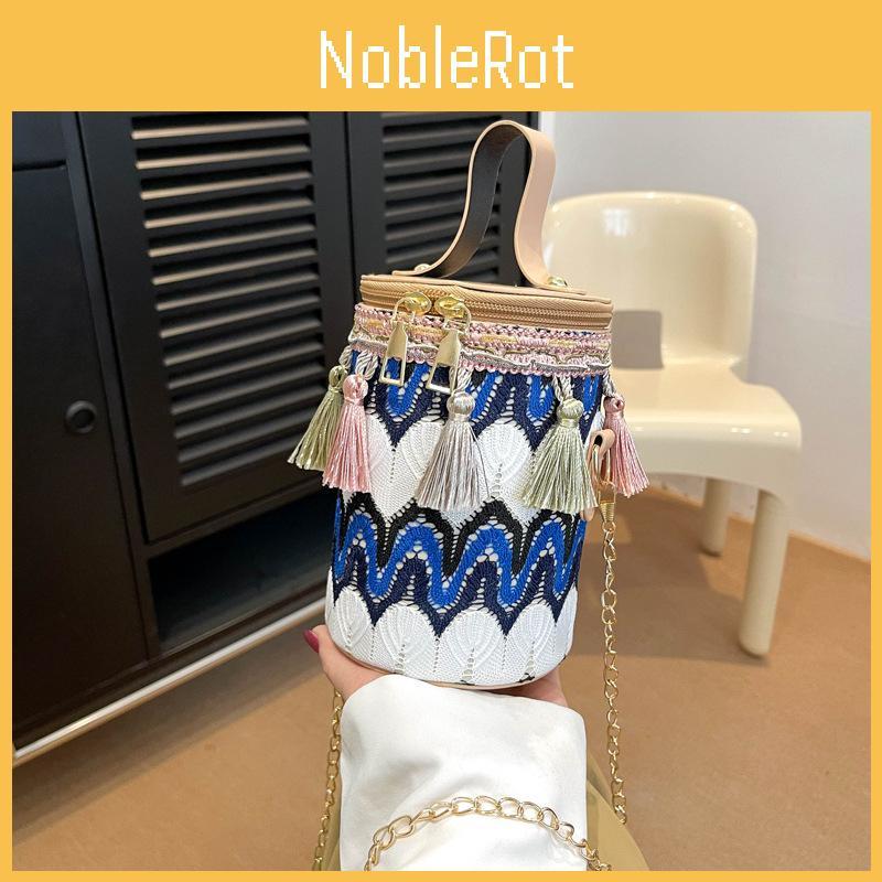 Ethnic Tassels Style Chain Strap Tote Cylinder Crossbody Bag For Women Daily Use