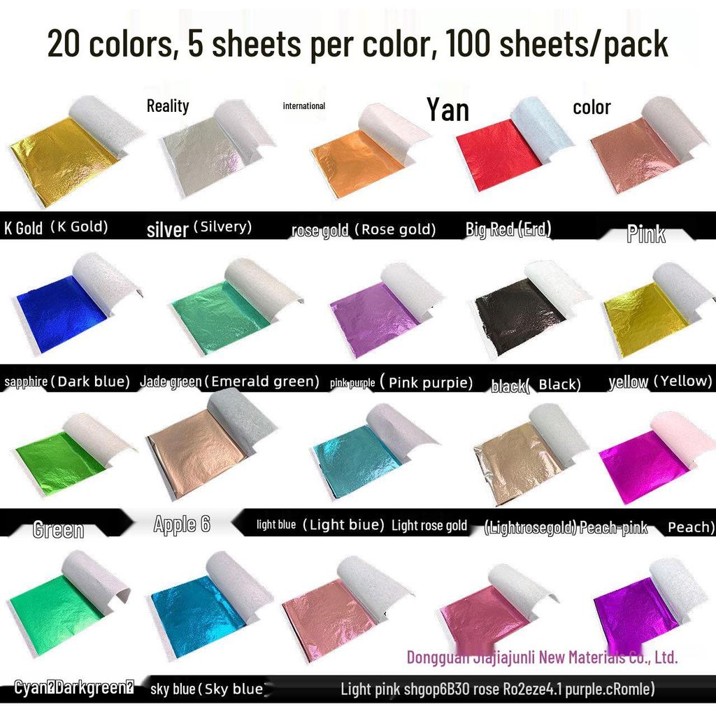 Gold Leaf Paper: 20 Colors, 5 Sheets Each, 100 Sheets Total for Crafts, Wall Decoration, Painting, and Backgrounds.