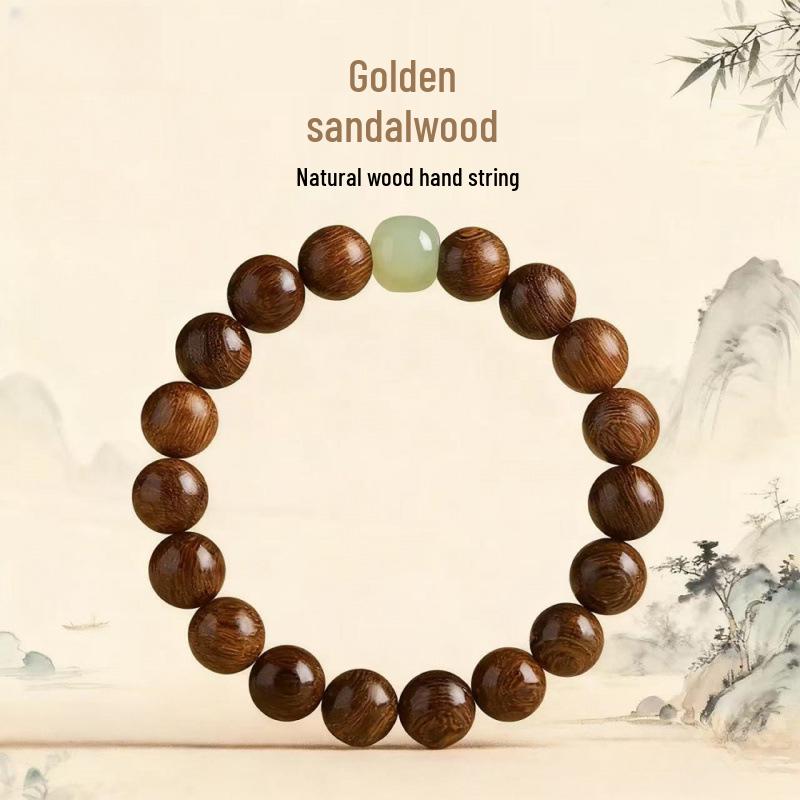 Golden Sandalwood Prayer Beads - Natural Wooden Hand String for Men & Women, Retro Tide Design, Scenic Area Gift.