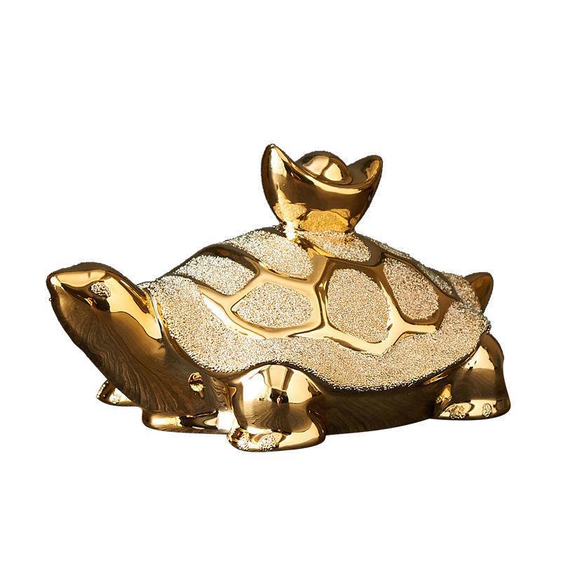 Gold-Plated Ceramic Turtle Figurine - Feng Shui Home Decor Ornament