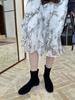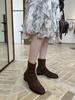 French Retro Brown Short Boots and Bare Boots Women's Boots Thick Heel 2025 Autumn and Winter Small Elastic Thin Boots
