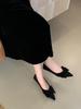 Soft-soled Single Shoes Women's Shallow Mouth 2025 New Autumn Pointed Head Shallow Mouth Thick Heel Soft Leather Bow Fairy Women's Shoes Tide