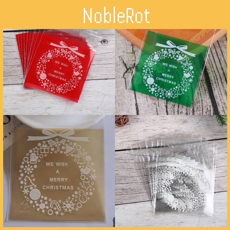 This transparent, self-sealing Christmas gift bag measures 7*7cm and is made from durable, biodegradable plastic. Designed for wrapping hard candies, cookies, and chocolates, it features a simple style with vibrant color options like red, green, white, and gold, and an inner layer for added protection.