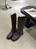 British Style Retro Belt Buckle Knight Boots 2025 New Wide with Martin Boots One Pedal Thick Heel Thick Sole Medium Boots