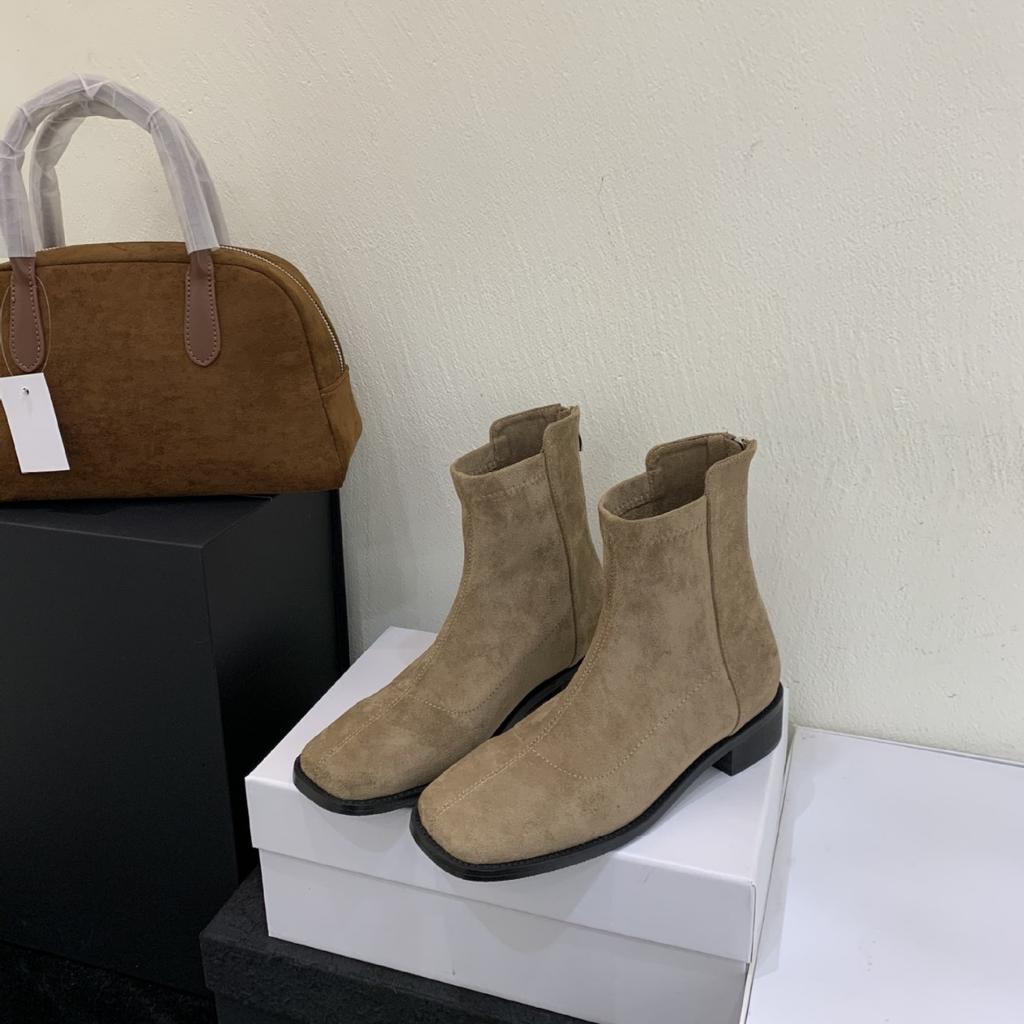 South Korea Dongdaemun Thick Heel Short Boots Women's Thin Boots 2025 Autumn and Winter New Square Head Zipper Commuter Simple Boots