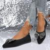 Fashion 2025 New Slip On Pointed Toe Women's Flat Shoes Outdoor Crystal Bow Tie Shallow Flats Plus Size Comfortable Casual Walking Shoes