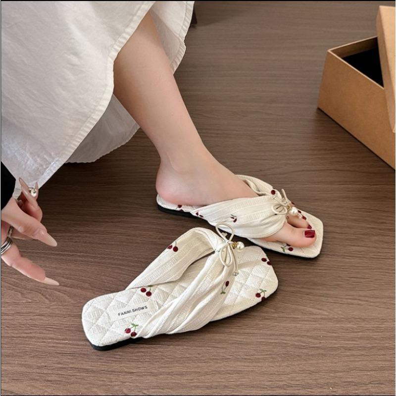 Fashion Bow Women Slippers Flats Clip Toe Sandals Casual Shoes 2025 Summer Fashion Slides Print Trend Flip Flops Mujer Sandalias