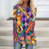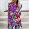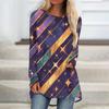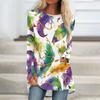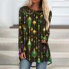 Women's Fashionable Round Neck Raglan Long Sleeved Carnival Printed Casual Pullover Top