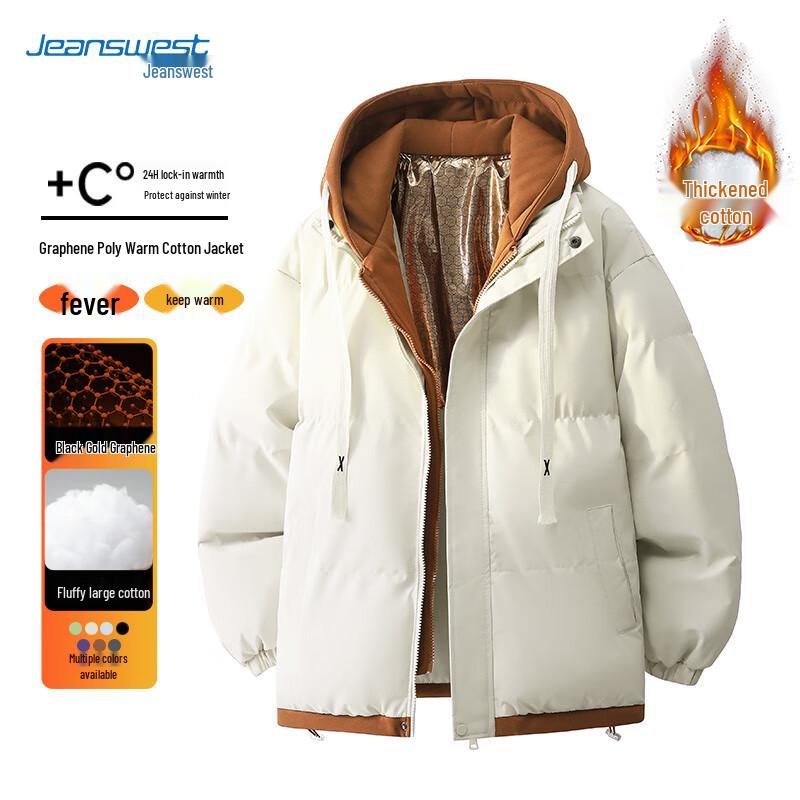 JEANSWEST Unisex Fake Two-Piece Hooded Padded Jacket