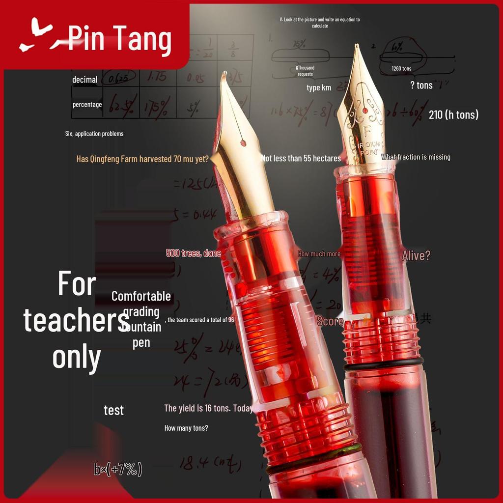 Teacher Correction Fountain Pen with Red Ink - Large Capacity Bent Nib for Grading