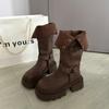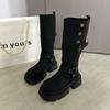 Winter Vintage Platform Thick Sole Woman Knight High Boots Fashion Belt Buckle Shoes Ladies Concise Slip On Modern Long Botas