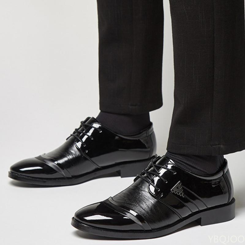 Men'S Business Dress Wedding Shoes Spring New Pointed Leather Shoes Design Lace Up Casual Style Single Shoes De Hombre