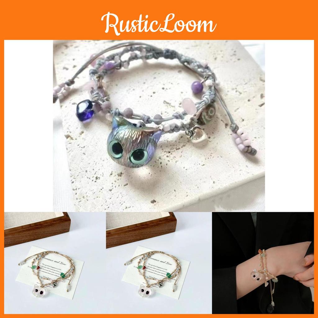 Charming Fresh And Cat Pattern Woven Bracelet For Women Gift And Wear Casual