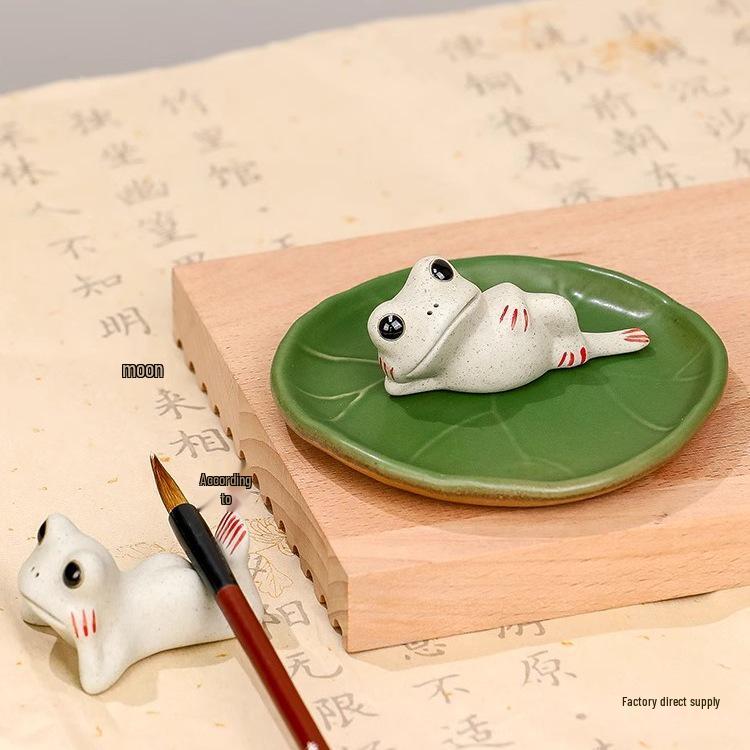 Ceramic Frog Calligraphy Pen Holder and Paperweight Set
