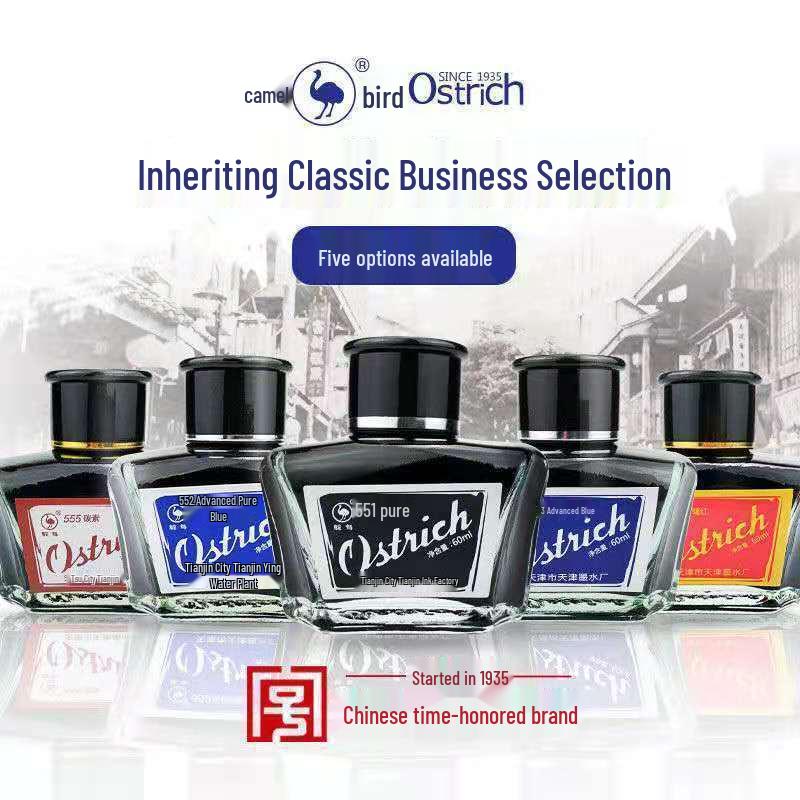 Ostrich Non-Carbon Ink for Series 5 Fountain Pens, Waterproof, Erasable, Red/Black/Pure Blue.