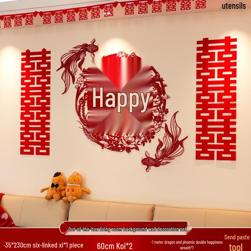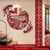 Honeymoon Courtyard & Staircase Wall Decor Set: Double Happiness Wedding Gift for Bride & Groom.