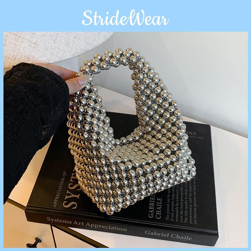 Woven Pu Beading Small Clutch Bag Pearl Embellishments Internal Pocket Parties