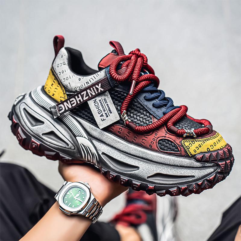 Men's Light Luxury Mesh Sports Shoes: Non-Slip, Breathable, Thick Sole, Height-Increasing, Autumn/Winter Casual Running Dad Shoes.