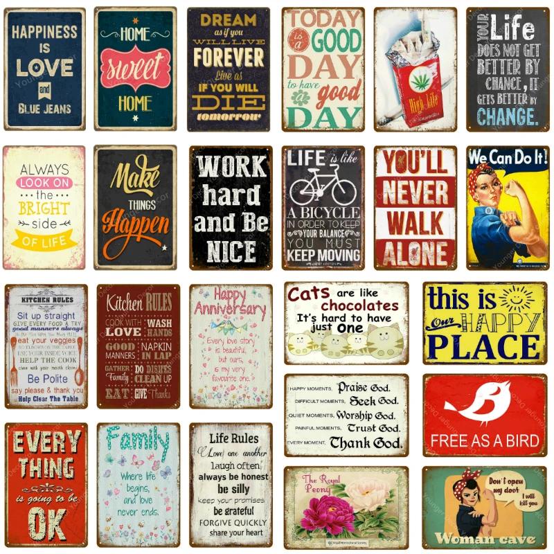 Happiness Is Love Metal Poster Tin Signs Plate Wall Decoration Vintage Art Painting Family Kitchen Rule Plaque Home Decor YJ155