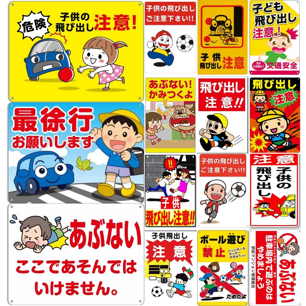 Japanese Metal Tin Warning Signs Do Not Play Outside. Attention To Children's Signs for Walls, Roads, Outdoor Warning Signs