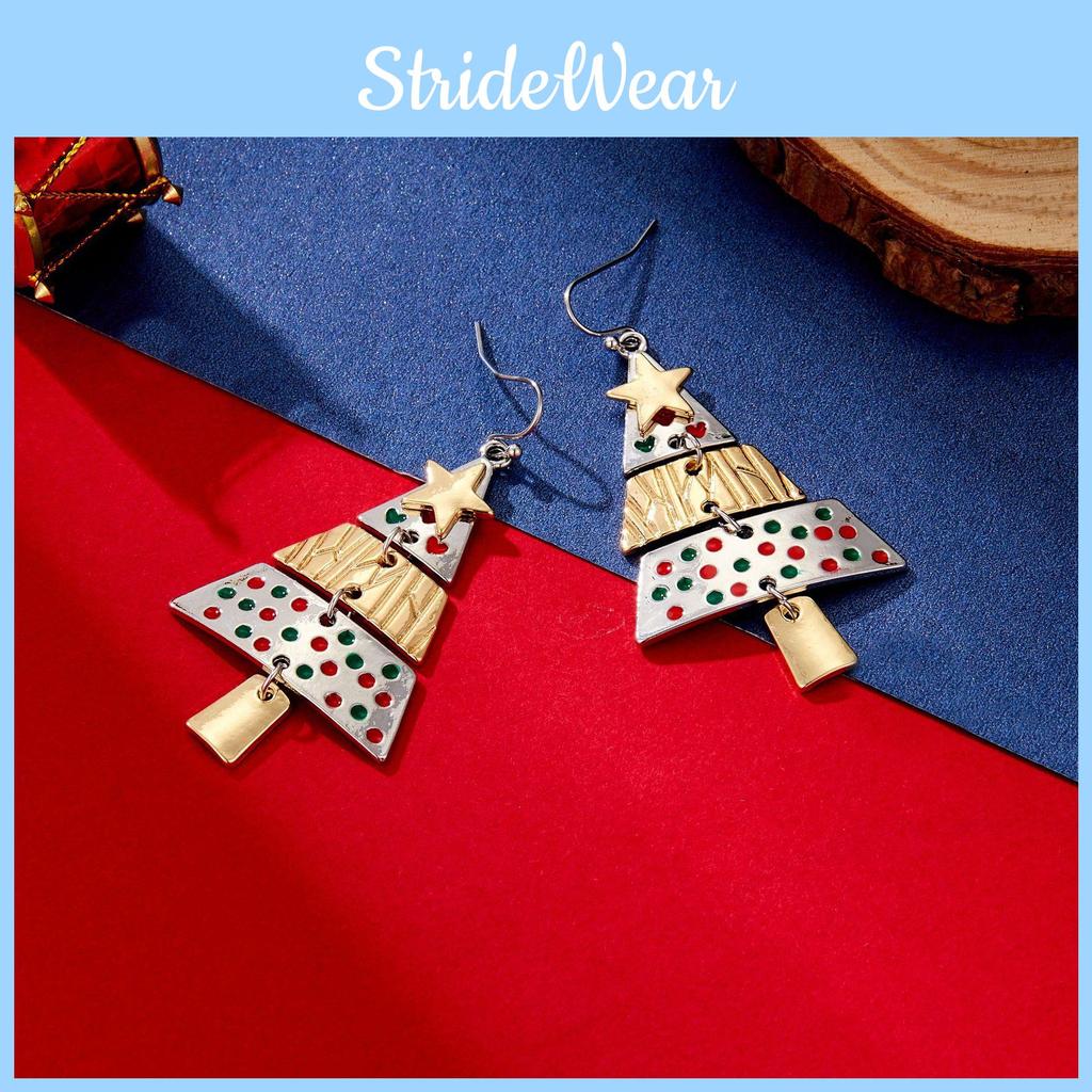 Long Alloy Trendy Christmas Tree Earrings Featuring Vibrant Geometric Star Shapes Celebrations For