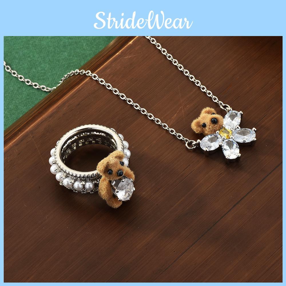 Highend Bear Velvet Necklace And Ring Set With Sparkling Gemstone Details Ladies For
