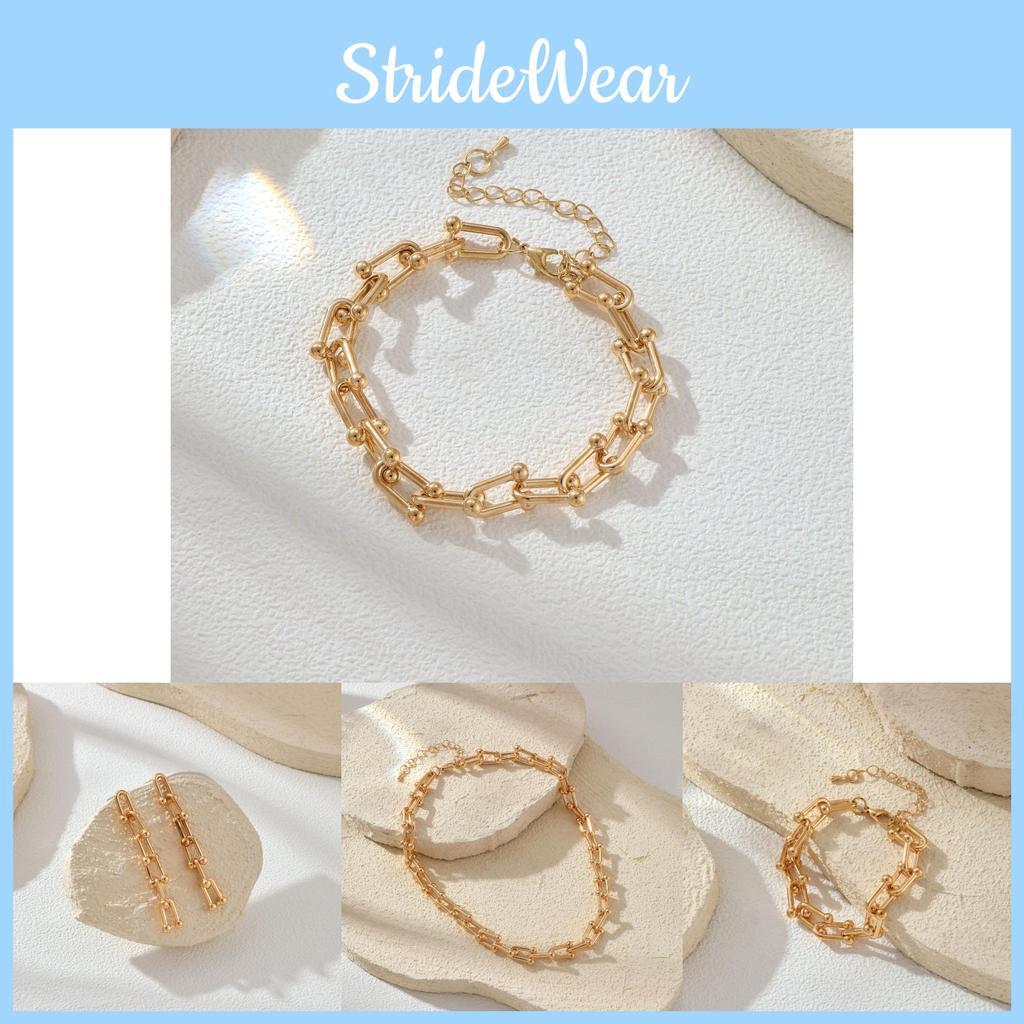 Geometric Design Unique Minimalist Ushaped Horseshoe Buckle Chain Bracelet Necklace