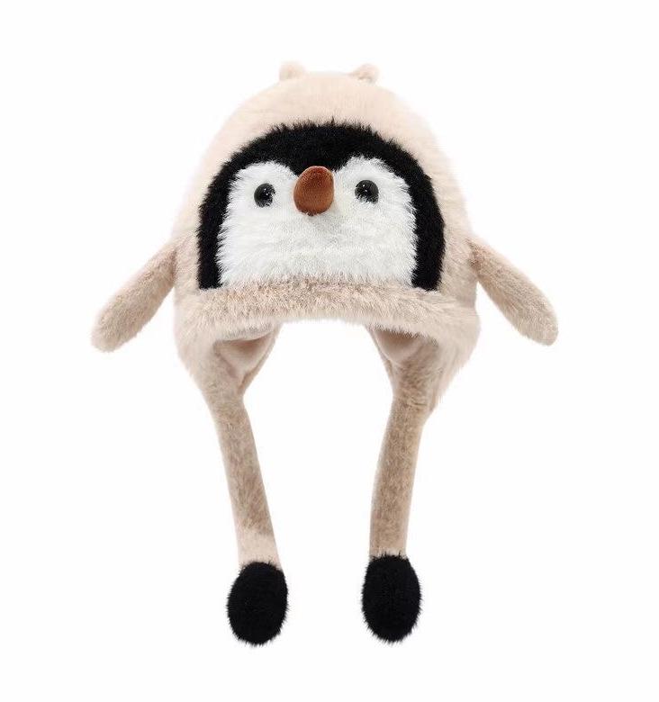 Cartoon Penguin Kids' Winter Hat: Warm, Thick, Velvet-Lined, Round Top, Ear Protection for Autumn/Winter