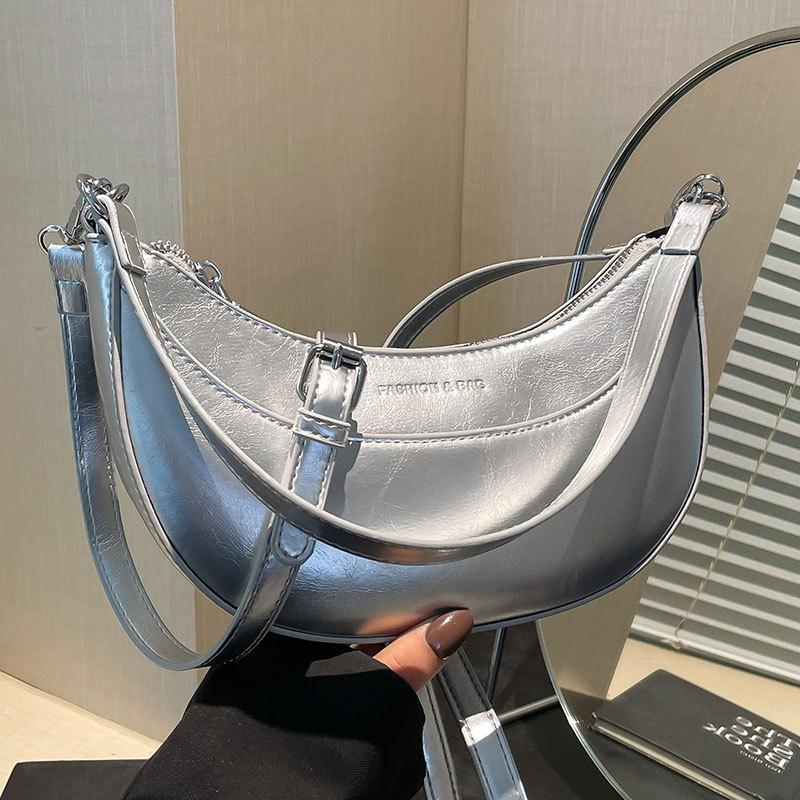 New Product Niche Simple Personality Hand Carry Crescent Moon Bag Versatile Temperament Commuter Oil Wax Leather Messenger Bag Female