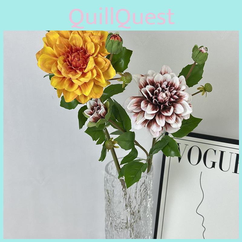 Flower Wedding Artificial 3head 3d Dahlia Silk Fabric Event Photography Decor