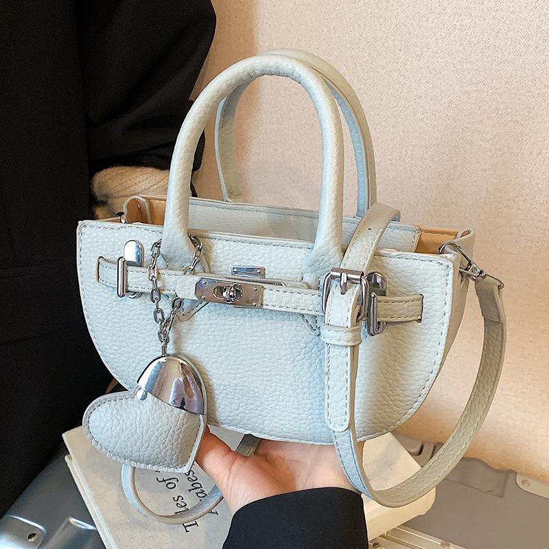 New Fashion Casual Personality Design Sense Portable Semicircular Bag Lychee Pattern Premium Texture Crossbody Bag Women