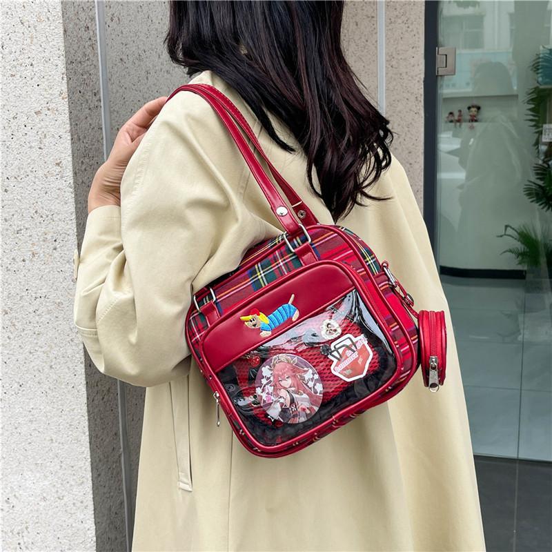 Japanese Cute Transparent Pain Bag 2025 New Large-capacity Shoulder Crossbody Handbag Female Students Class Bag Tide
