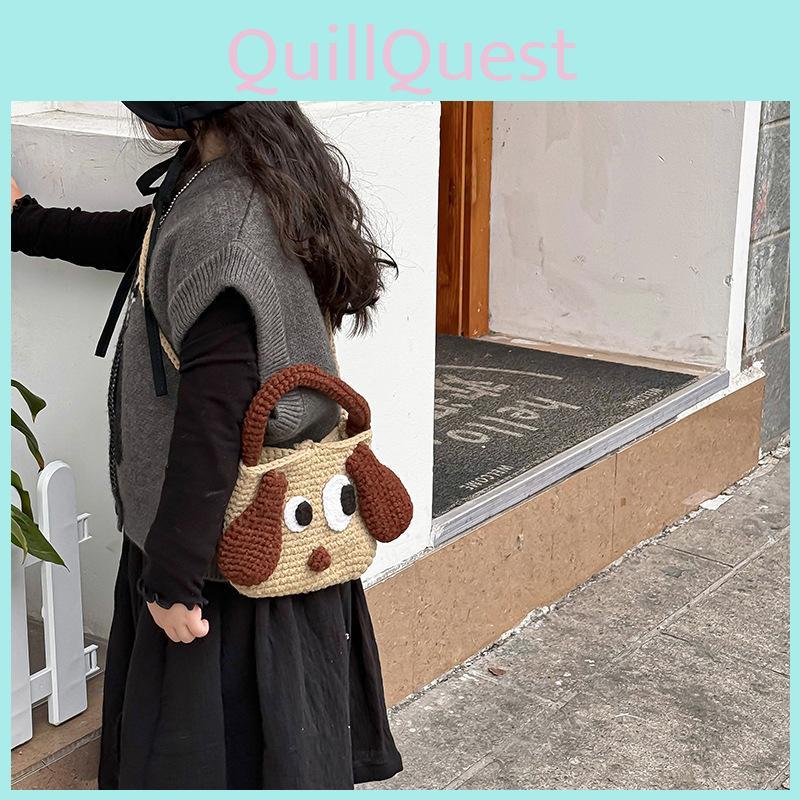 Toddler Kids Knit Bag Handbag With Cartoon Dog Design And Lightweight Style