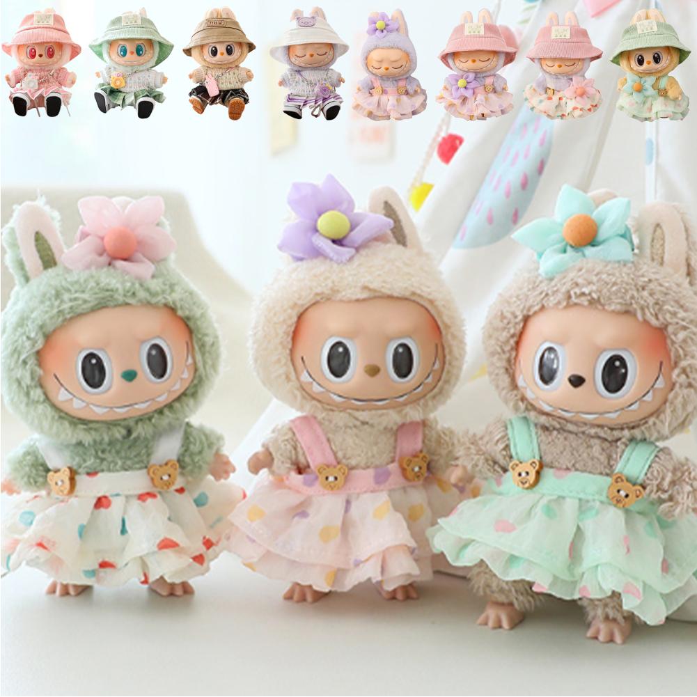 For 17cm Labubu Mini Doll Clothes Outfit Soft Knitted Sweater Suit Sitting Party JK Pleated Skirt Set Kawaii Bear Dress DIY Toy
