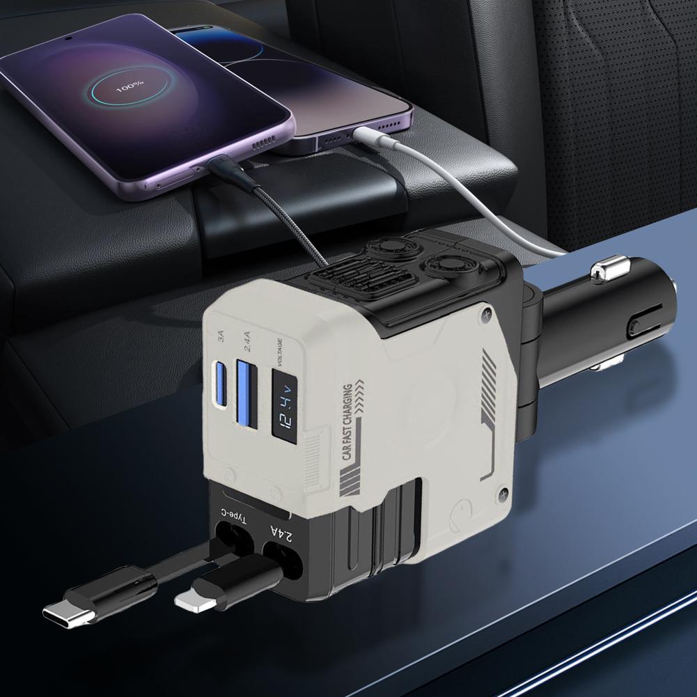 4 In 1 Retractable Car Charger Fast Car Phone Charger Fast Charging Adapter Type-C Car Charger Adapter for IPhone/Samsung/Huawei