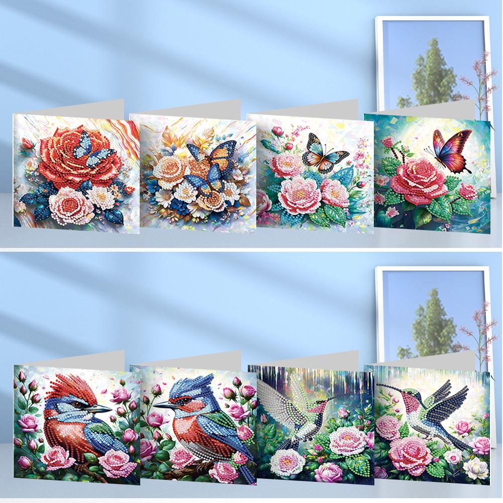 8/12pcs Diamond Painting Greeting Cards Handmade Diamond Painting Gift Card 5D Rhinestone Embroidery Arts Cards Kits for Adults