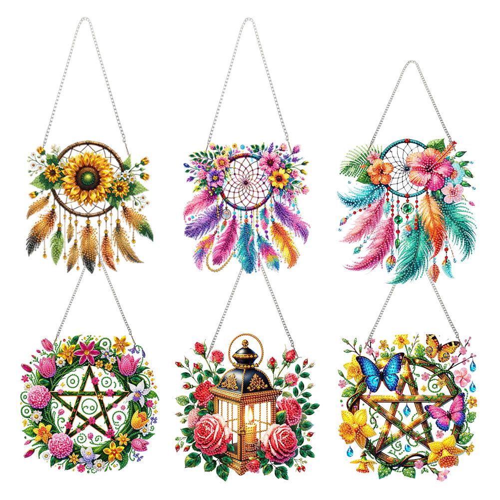 Acrylic Special Shape Flowers Light 5D DIY Diamond Painting Dots Pendant Rhinestone Diamond Art Pendants for Garden Window Decor