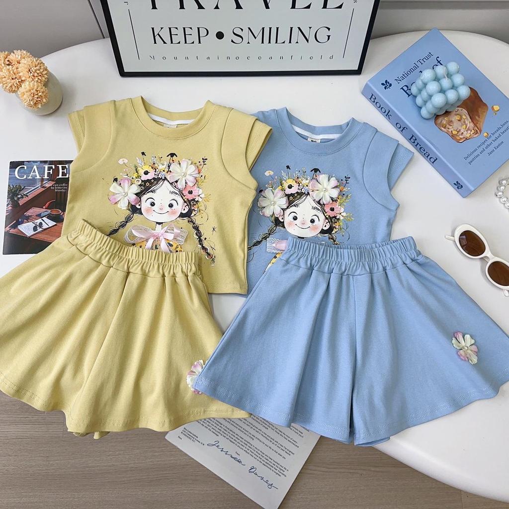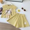 This stylish two-piece set for little girls features a fashionable loose short sleeve top paired with matching shorts, perfect for summer wear. Made from soft and breathable cotton, it ensures comfort and ease of movement, making it an ideal outfit for playful days in the sun. With its trendy Korean-inspired design, this set offers a blend of chic style and practicality for any young fashionista.