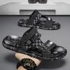 Men's Beach Sandals Fashion Plaid Breathable Casual Shoes Slip-On Summer New Youth Slipper for Men Two Threading Methods