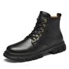 Retro Men Boots New Fashion Comfortable Autumn/Winter Plush Warm High Top Leather Boots Brand Lace Up Classic Black Mid Top Shoe