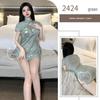 Mulan Retro Print Cheongsam Pajama Set - Sexy, Slim, High Slit, Bodycon Lingerie In Ancient Style