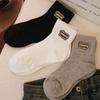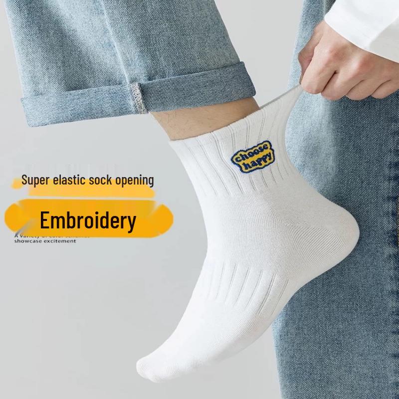 Men's Happy Embroidery Socks - Pure Cotton, Sweat-Absorbent & Odor-Resistant, All-Season Solid Color