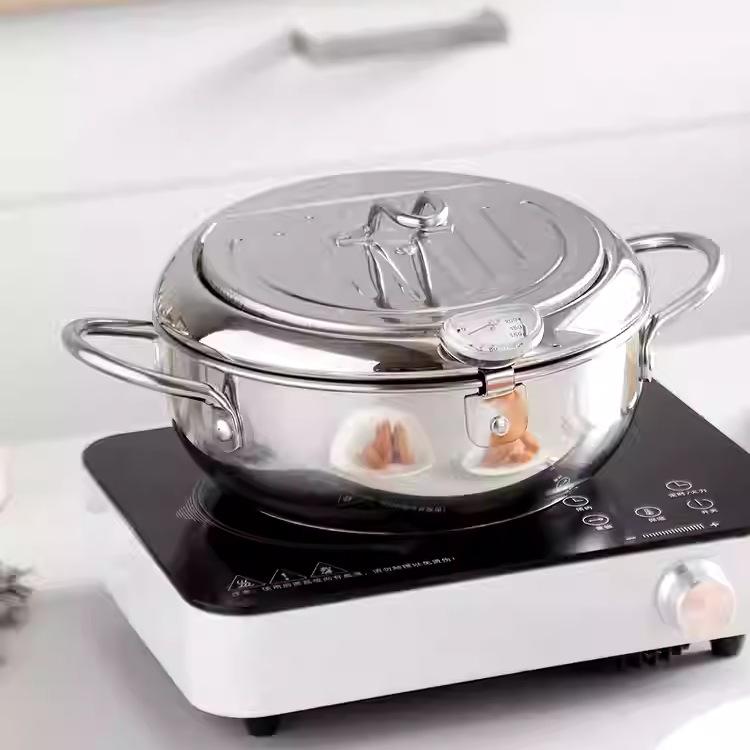 304 Stainless Steel Japanese Tempura Fryer Pot with Thermometer and Oil Rack