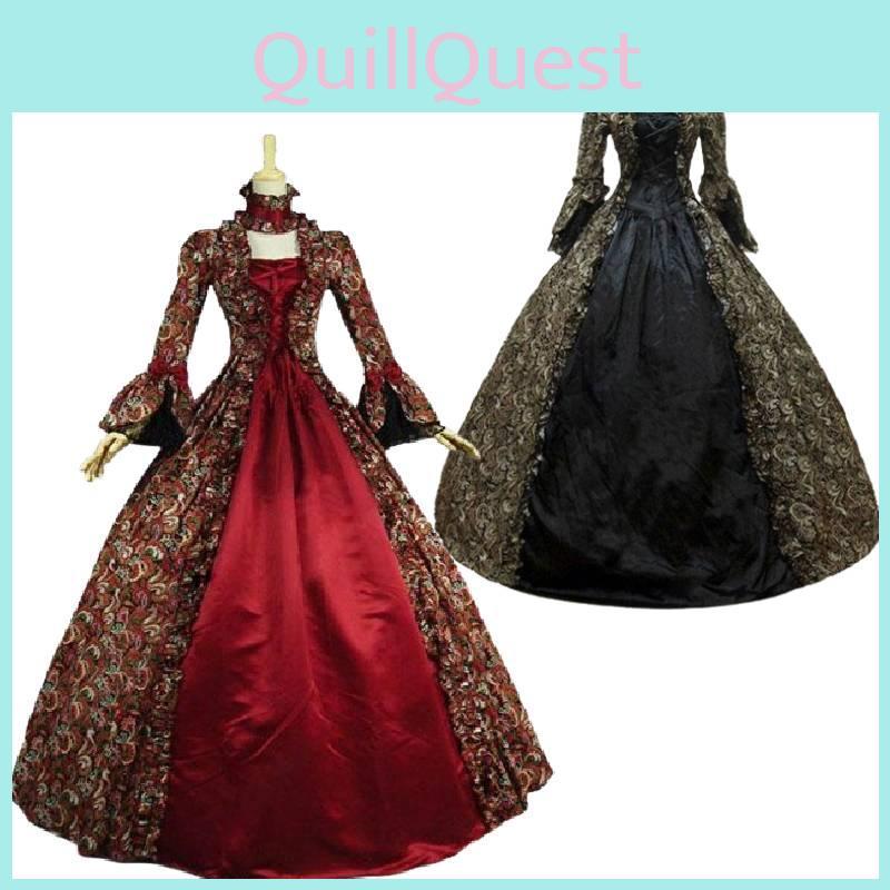 Dress Victoria Court Long Sleeved Flared Print Skirt Cosplay Costume Halloween