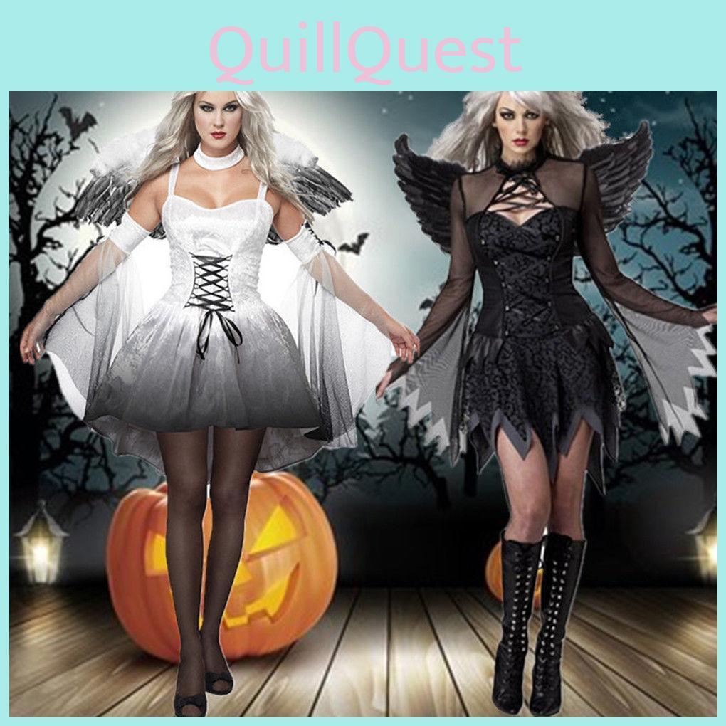 Dark Halloween Womens Angel Devil Costume Fancy Dress Ghost Bar Cosplay Party