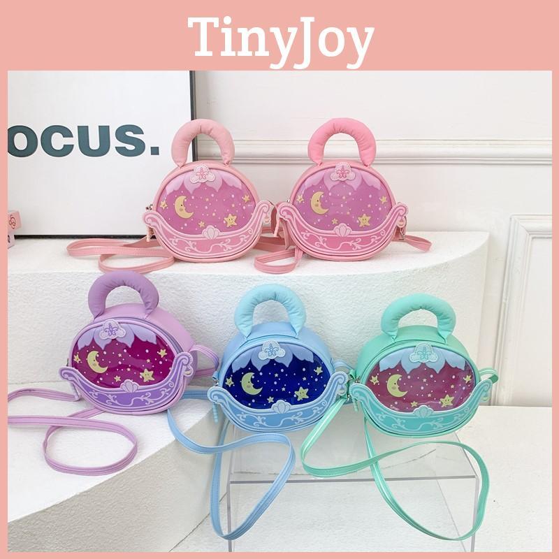 Solid Color Simple Star Moon Print Children Round Shape Crossbody Bag For Girl